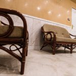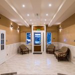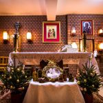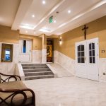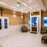 Hall Domu Rekolekcyjnego w niczym nie przypomina tego, który oglądaliśmy jeszcze w sierpniu, podczas pielgrzymki dziękczynnej Ruchu. Jest jasno, przestronnie, mimo likwidacji szatni i włączeniu jej do jadalni. Zniknął ogromny narożnik, może nawet wygodny ale zbyt duży i do tego trudny w utrzymaniu czystości. Jego miejsce zajął lekki ratanowy komplet wypoczynkowy, którego obicie idealnie pasuje do ciepłego odcienia koloru ścian. Gładki stiuk zaczyna się powyżej lamperii z płytek ceramicznych. Energooszczędne żarówki zamontowano w obniżonym miejscami suficie, a przestrzenna konstrukcja, doświetlona ściennymi kinkietami, prezentuje się znakomicie.